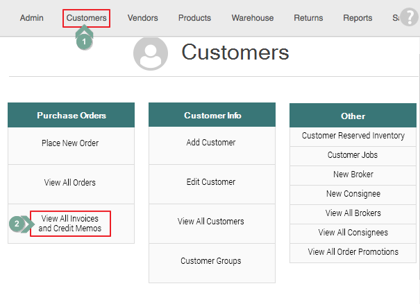 1. Go to the Customers menu > View All Invoices and Credit Memos.