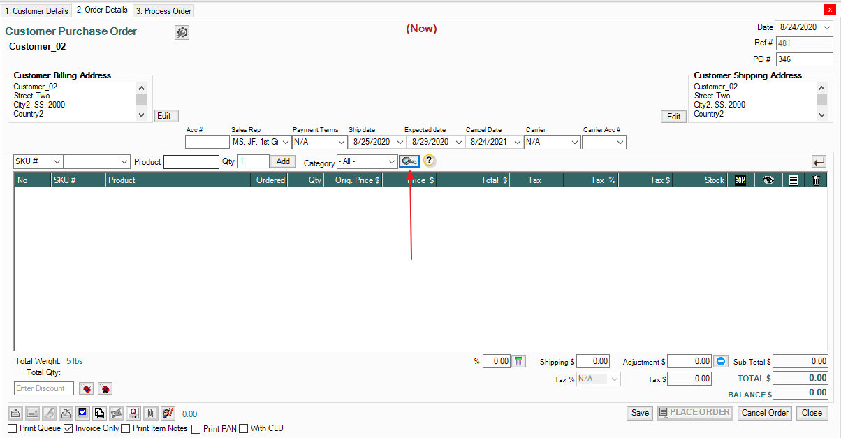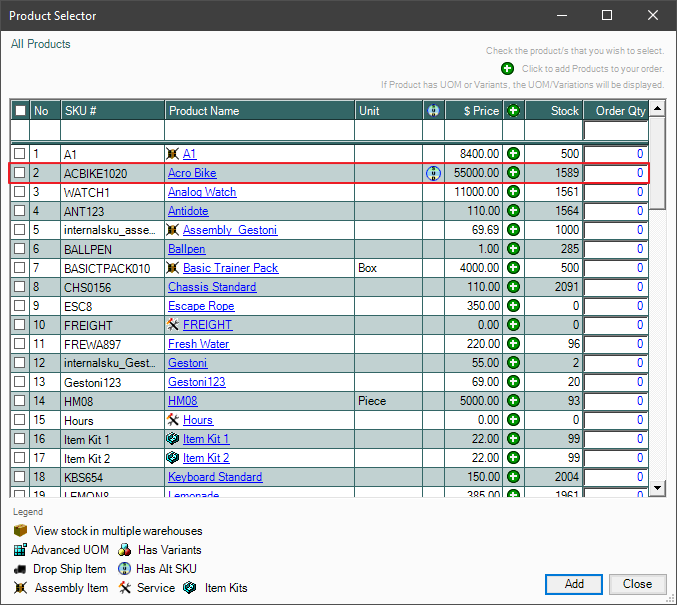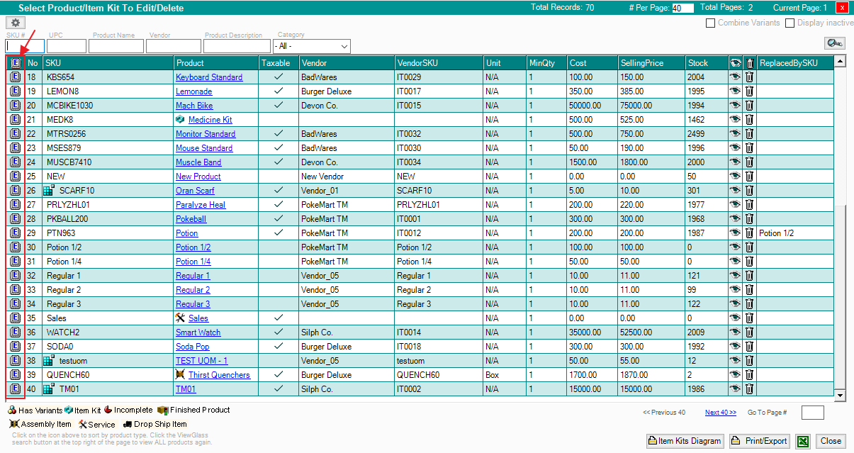 4. Then Select the Product with an Alt SKU, and click the Alt SKU icon (