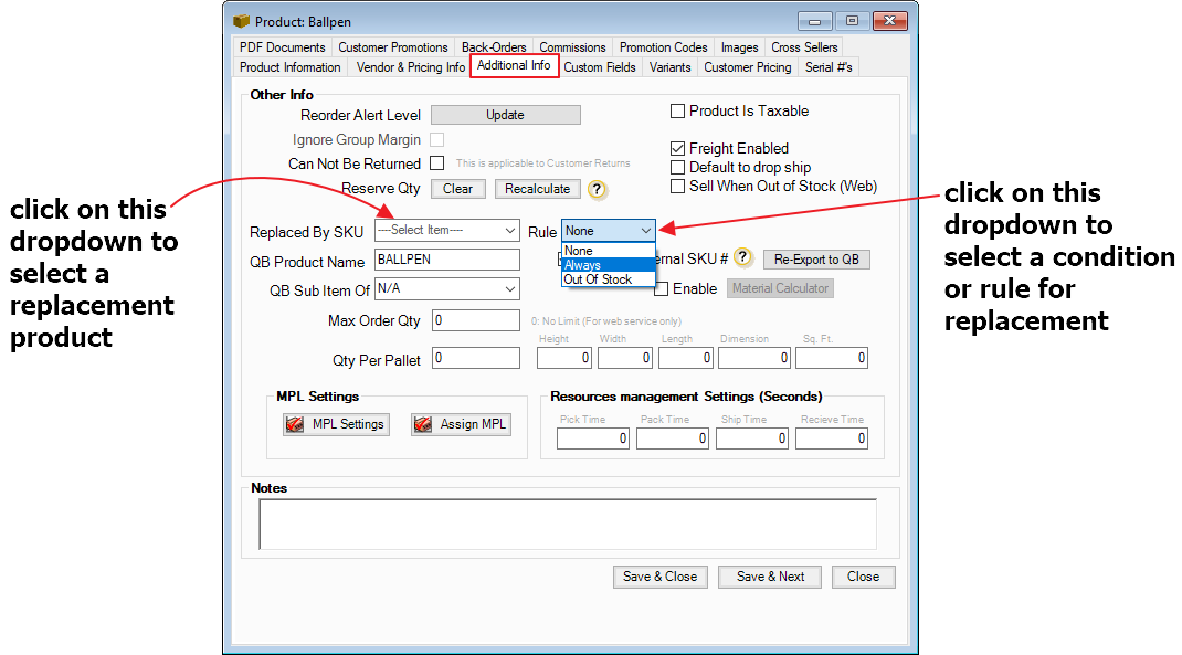 On versions 11.21.11 and up, Advancepro has added the Product Replacement feature and the Alt. SKU list feature.