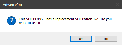 (Selecting yes will replace the product selected with the Replacement Sku)