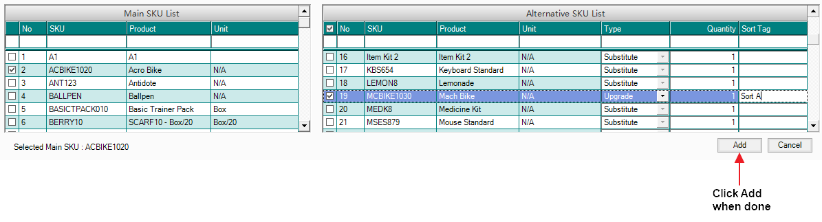 6. After Selecting ALT SKUs, click the 'Add' button to confirm.