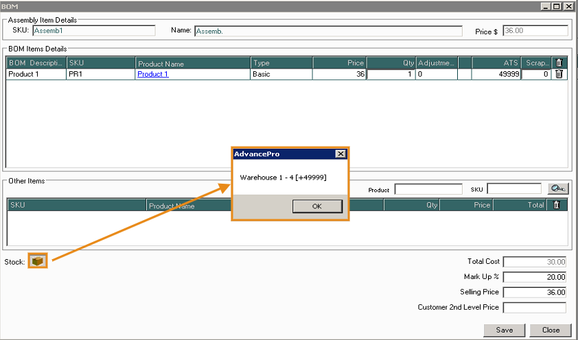 - Other Items - User can either search for the Product Name or SKU to add products to the BOM