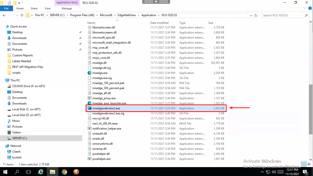 Go to C:\Program Files (x86)\Microsoft\EdgeWebView\Application\95.0.1020.53