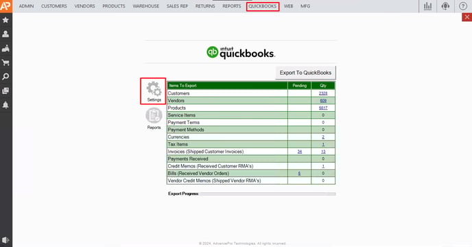 IMPORTANT: backup your QuickBooks and AdvancePro company files prior to your first export. If any items or settings in AdvancePro are different than QuickBooks, then the corresponding items and settings will be updated in QuickBooks during the export. Backing up will allow you to roll back if you have made a mistake on the setup and need to reconfigure.
