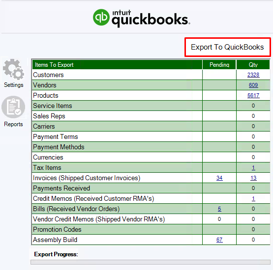 2 Go to the ‘QuickBooks’ tab and click 'Export to QuickBooks.'