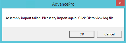 3. Click ‘OK’ to view which assembly items have not yet imported and then repeat the import process until you no longer receive the ‘Assembly import failed’ message. At this point all assemblies will have imported.