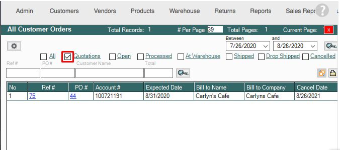 3. If the CPO is closed manually, go back to Customers menu > View all Orders > and filter Quotations, and repeat step 2.