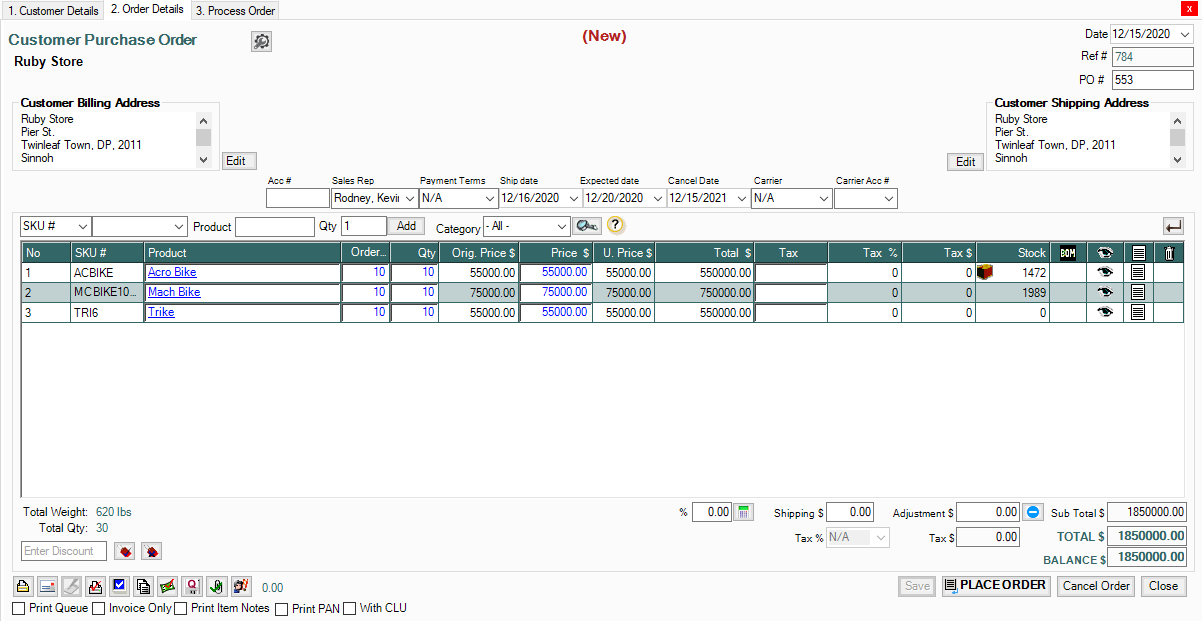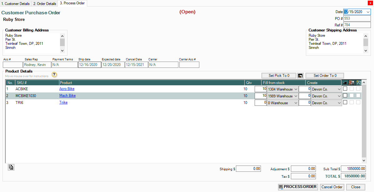 1. Create a New Customer Purchase Order