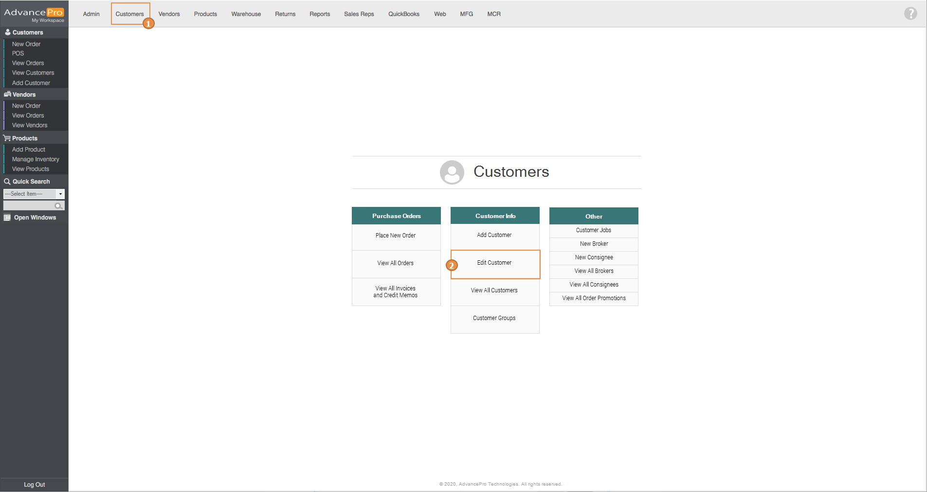 - To add notes to your shipping address, go to Customers switchboard, click on Edit customer.