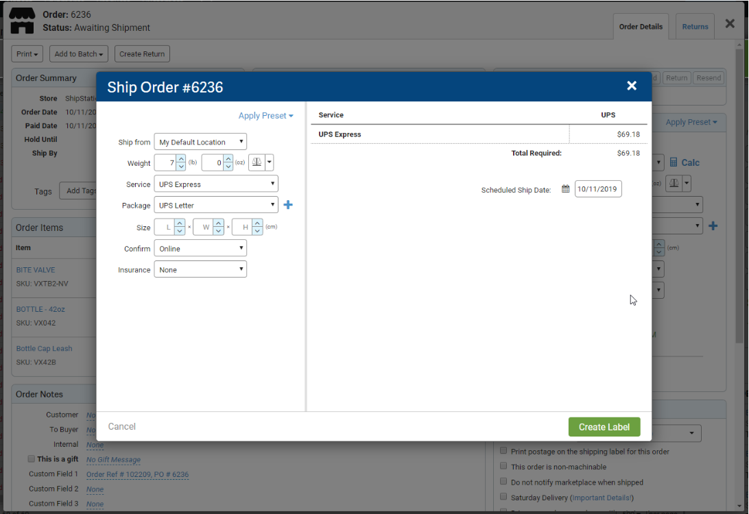 - Once an order has been imported to ShipStation, you can create the label as you normally would. Select Services, Package and then click on Create Label