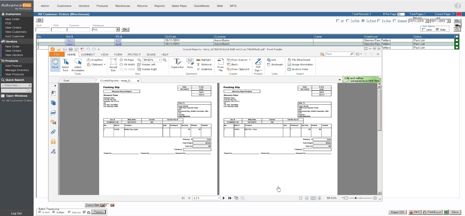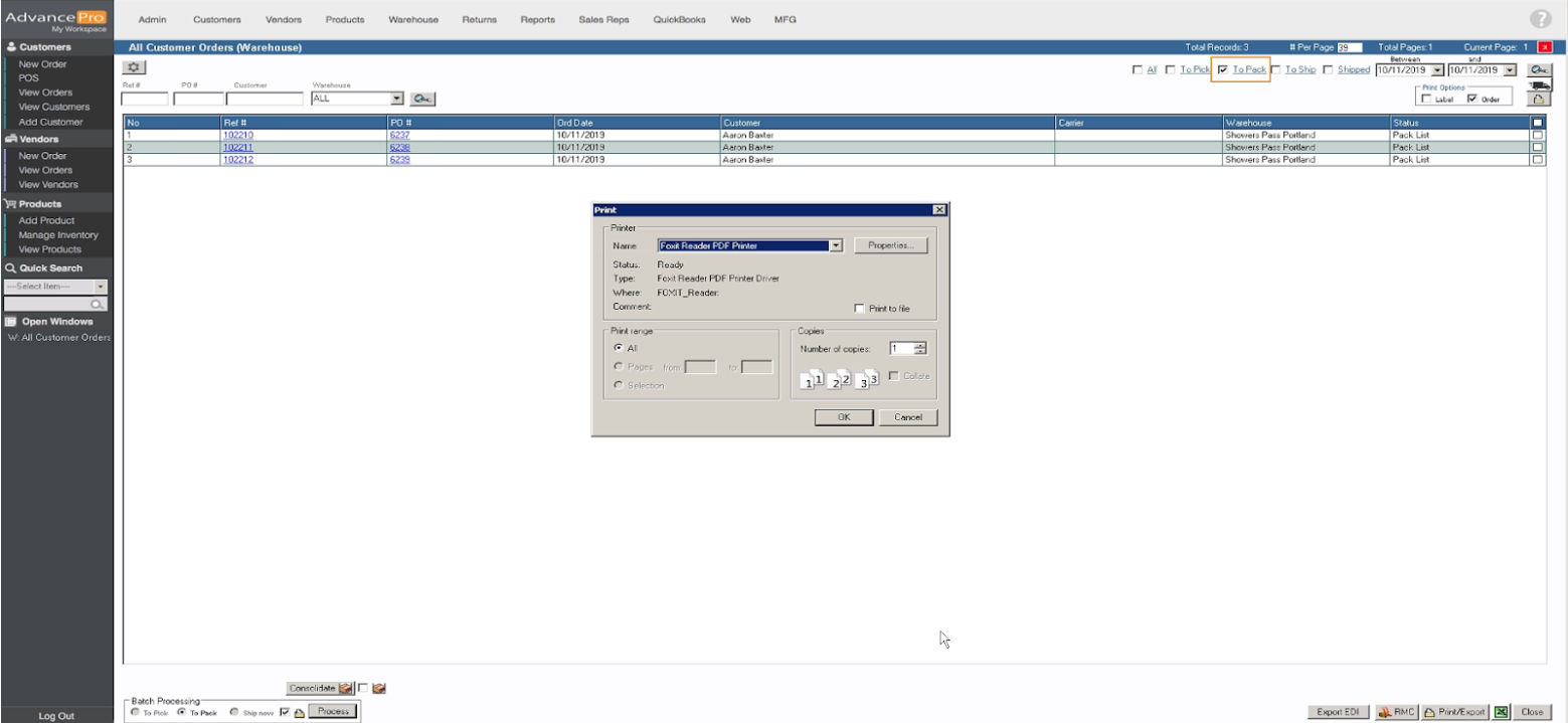 - Orders will be sent to To Pack and a Print window will pop-up, click on OK and the user will be asked where will they want to save the file.