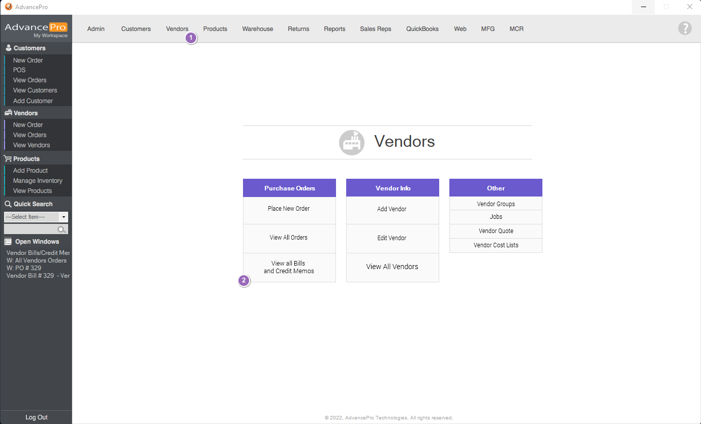 - Go to Vendors switchboard and click on View All Bills and Credit Memos