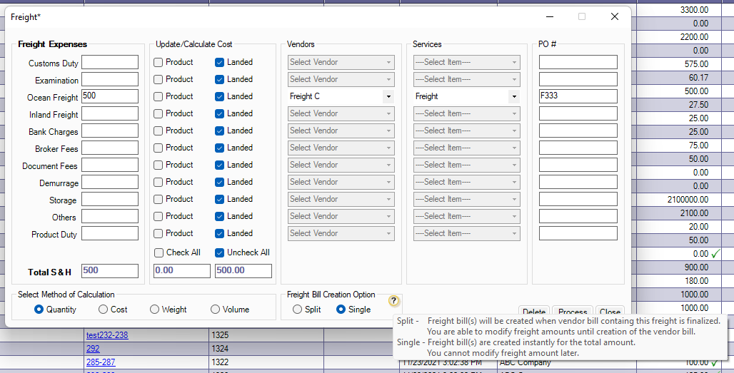 How to Create a single bill for freight added across Pending Bills