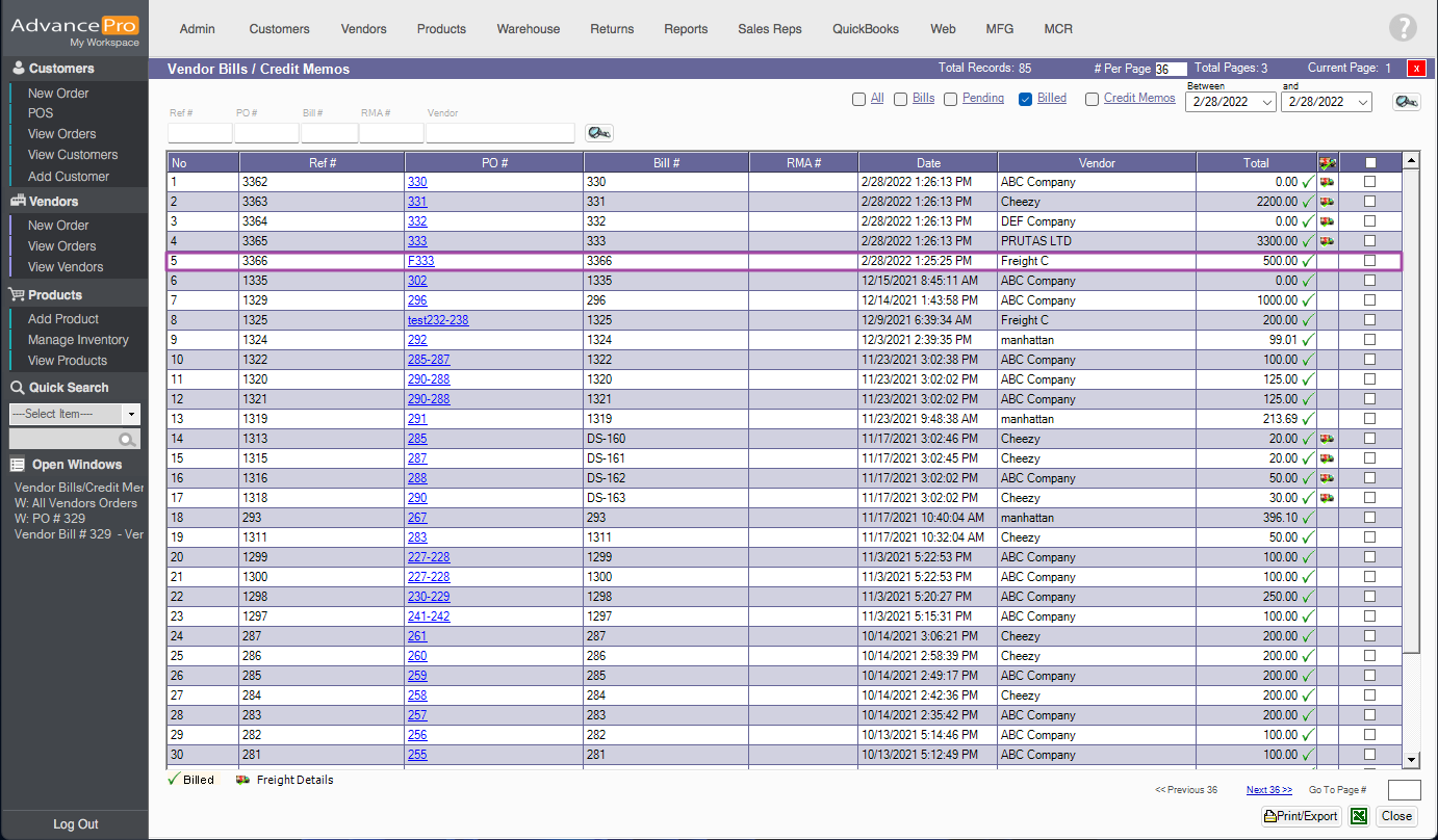 AdvancePro has added an ability to create a single bill for freight across multiple bills