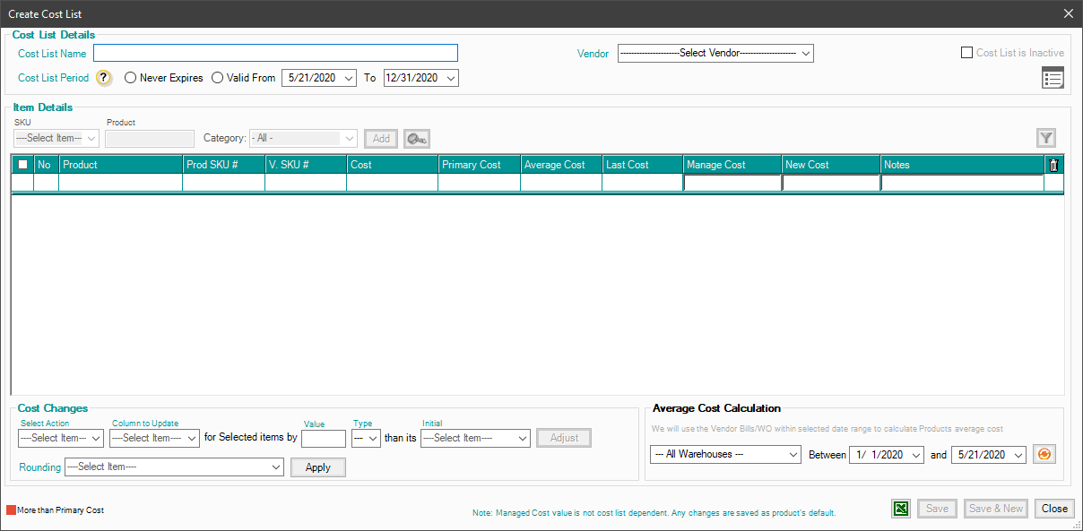AdvancePro has added a new feature that will allow users to create a vendor cost list and set it on a specific date range