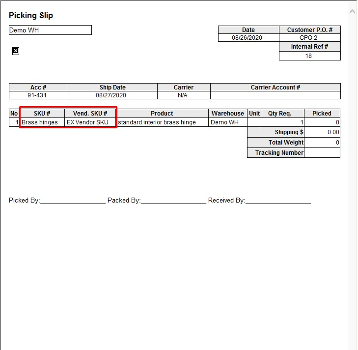 2. Internal SKU & Vendor SKU (on Pick, Pack and Ship)