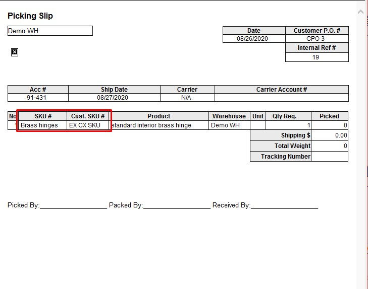 3. Internal SKU & Customer SKU (on Pick, Pack and Ship)