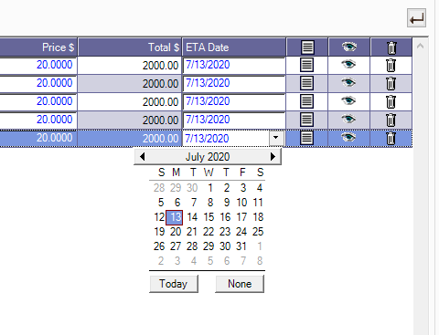 By default, it will be set to today's date. A calendar is available for each line item to set.